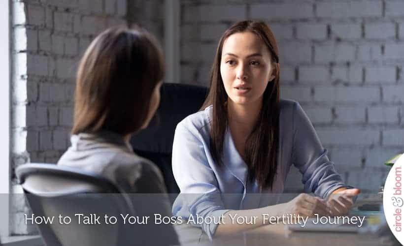 It may be worth speaking with someone in your company’s HR department about your infertility. They may be able to provide you support and help you talk through how to talk to your boss and/or coworkers. Another important consideration in going to HR is that they can help you understand what your options are for taking Family Medical Leave or using flex time, and explain any potential infertility treatment benefits that you may not know about.