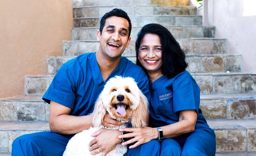 Dr. Vinay Gunnala was born and raised in Phoenix, Arizona. He received his undergraduate degree in Mammalian Physiology and Neuroscience at the University of California, San Diego and his medical degree from the University of Arizona, College of Medicine in Tucson. He completed residency in Obstetrics and Gyncecology at New York Presbyterian – Weill Cornell. Since completing fellowship in Reproductive Endocrinology and Infertility at the prestigious Center for Reproductive Medicine at Weill Cornell, he came back home to join his mother’s fertility practice. His mother (pictured below) Sujatha Gunnala, founded Southwest Fertility Center in 1980, which is currently the longest standing fertility practice in Arizona. Dr.s Gunnala both specialize in all aspects of reproductive medicine, offering patients a full range of fertility services including ovulation induction, egg freezing for fertility preservation, oocyte donation, and IVF/ICSI with and without preimplantation genetic testing. In his spare time, he enjoys spending time with his loving wife and baby boy, Dhillan, and golden doodle, Riggins (pictured below).