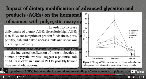 According to Dr. Greger’s video, “AGEs might indeed be contributing ‘to the cause of polycystic ovary syndrome…and infertility.”